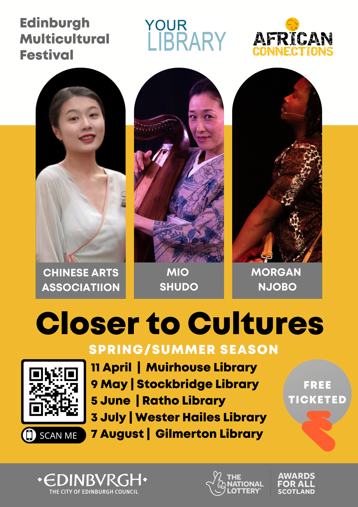 The programme is hosted by Edinburgh Multicultural Festival in partnership with Edinburgh City Libraries with support from The National Lottery Community Fund Scotland Awards for All Scotland and The City of Edinburgh Council.